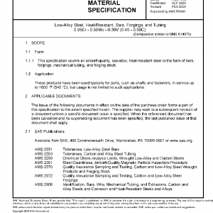 This specification covers an aircraft-quality, low-alloy, heat-resistant steel in the form of bars, forgings, mechanical tubing, and forging stock.