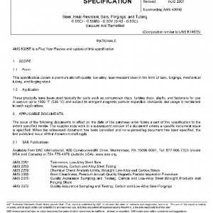 This specification covers a premium aircraft-quality, low-alloy, heat-resistant steel in the form of bars, forgings, mechanical tubing, and forging stock.