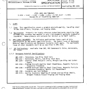 This specification covers a premium aircraft-quality, low-alloy steel in the form of bars, forgings, and forging stock.