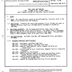 This specification covers an aircraft-quality, low-alloy steel in the form of heat treated bars and forgings.