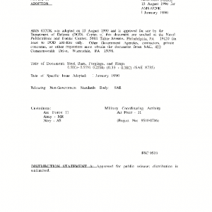 This specification covers an aircraft-quality, low-alloy steel in the form of bars, forgings, flash welded rings, and stock for forging or flash welded rings.