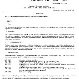 This specification covers an aircraft-quality, low-alloy steel in the form of bars, forgings, flash welded rings, and stock for forging or flash welded rings.