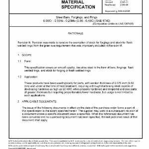 This specification covers an aircraft-quality, low-alloy steel in the form of bars, forgings, flash welded rings, and stock for forging or flash welded rings.