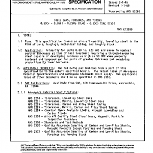 This specification covers an aircraft-quality, low-alloy steel in the form of bars, forgings, mechanical tubing, and forging stock.