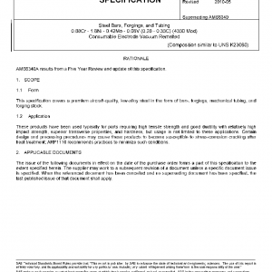 This specification covers a premium aircraft-quality, low-alloy steel in the form of bars, forgings, mechanical tubing, and forging stock.