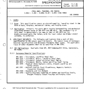 This specification covers an aircraft-quality, low-alloy steel in the form of bars, forgings, mechanical tubing, and forging stock.