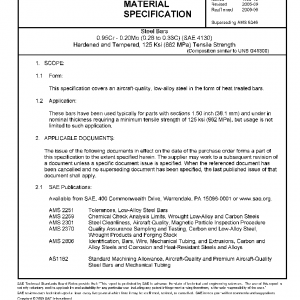 This specification covers an aircraft-quality, low-alloy steel in the form of heat treated bars.