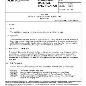 This specification covers an aircraft-quality, low-alloy steel in the form of bars.