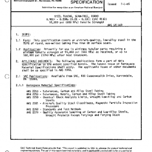 This specification covers an aircraft-quality, low-alloy steel in the form of round, non-welded tubing free from OD surface seams.