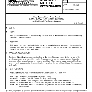 This specification covers an aircraft-quality, low-alloy steel in the form of round, non-welded tubing free from OD surface seams.