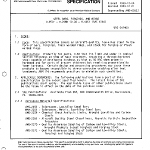 This specification covers an aircraft-quality, low-alloy steel in the form of bars, forgings, flash welded rings, and stock for forging or flash welded rings.