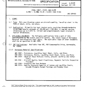 This specification covers an aircraft-quality, low-alloy steel in the form of sheet, strip, and plate.