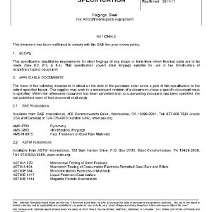 This specification establishes requirements for steel forgings of any shape or form from which finished parts are to be made (See 8.2, 8.3, & 8.4). This specification covers steel forgings suitable for use in the construction of aircraft/aerospace equipment