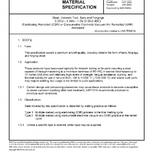 This specification covers a premium aircraft-quality, low-alloy steel in the form of bars, forgings, and forging stock.