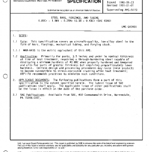 This specification covers an aircraft-quality, low-alloy steel in the form of bars, forgings, mechanical tubing, and forging stock.