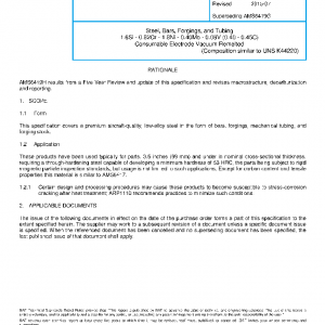 This specification covers a premium aircraft-quality, low-alloy steel in the form of bars, forgings, mechanical tubing, and forging stock.