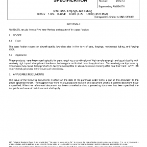 This specification covers an aircraft-quality, low-alloy steel in the form of bars, forgings, mechanical tubing, and forging stock.