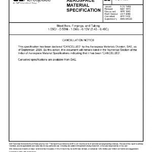 Steel Bars, Forgings, and Tubing, 1.05Cr – 0.55Ni – 1.0Mo – 0.12V (0.43 – 0.49C) (Cancelled Sep 2005)