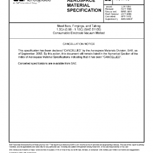 Steel Bars, Forgings, and Tubing, 1.0Cr (0.98 – 1.10C) (SAE 51100), Consumable Electrode Vacuum Melted (Cancelled Sep 2005)