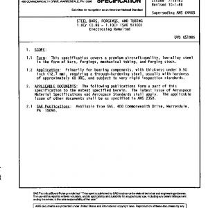 This specification covers a premium aircraft-quality, low-alloy steel in the form of bars, forgings, mechanical tubing, and forging stock.