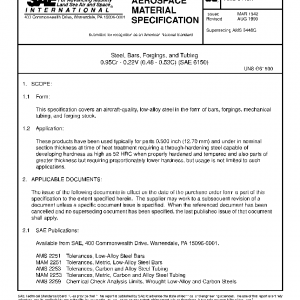 This specification covers an aircraft-quality, low-alloy steel in the form of bars, forgings, mechanical tubing, and forging stock.