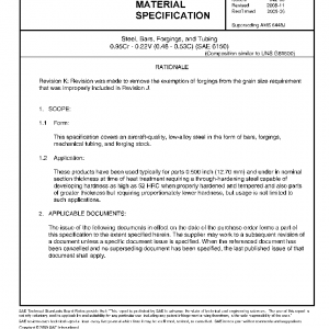 This specification covers an aircraft-quality, low-alloy steel in the form of bars, forgings, mechanical tubing, and forging stock.