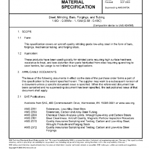 This specification covers an aircraft-quality nitriding grade low-alloy steel in the form of bars, forgings, mechanical tubing, and forging stock.