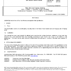 This specification covers an aircraft-quality, low-alloy steel in the form of heat treated bars and forgings, and of forging stock.