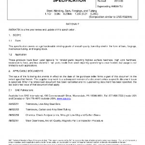 Steel, Nitriding, Bars, Forgings, and Tubing 1.1Cr – 3.5Ni – 0.25Mo – 1.2Al (0.21 – 0.26C)