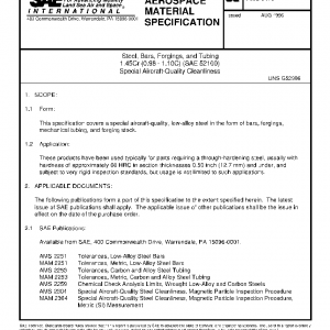 This specification covers a special aircraft-quality, low-alloy steel in the form of bars, forgings, mechanical tubing, and forging stock.