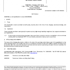 This specification covers a premium aircraft-quality, low-alloy steel in the form of bars, forgings, mechanical tubing, and forging stock.