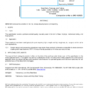 This specification covers a premium aircraft-quality, low-alloy steel in the form of bars, forgings, mechanical tubing, and forging stock.