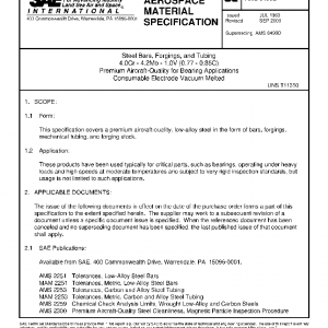This specification covers a premium aircraft-quality, low-alloy steel in the form of bars, forgings, mechanical tubing, and forging stock.