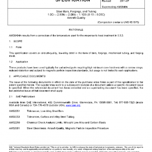 This specification covers an aircraft-quality, low-alloy steel in the form of bars, forgings, mechanical tubing, and forging stock.