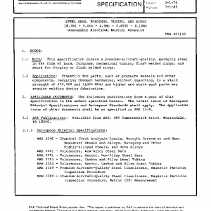 This specification covers a premium-aircraft-quality, maraging steel in the form of bars, forgings, mechanical tubing, flash welded rings, and stock for forging or flash welded rings.