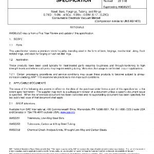 This specification covers a premium aircraft-quality, low-alloy steel in the form of bars, forgings, mechanical tubing, flash welded rings, and stock for forging or flash welded rings.