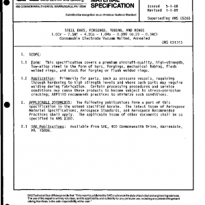 This specification covers a premium aircraft-quality, high-strength, low-alloy steel in the form of bars, forgings, mechanical tubing, flash welded rings, and stock for forging or flash welded rings.