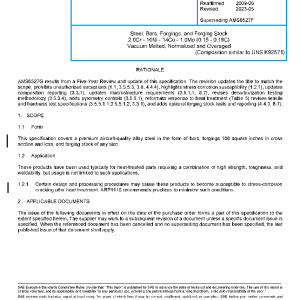 This specification covers a premium aircraft-quality alloy steel in the form of bars, forgings 100 square inches in cross section and less, and forging stock of any size.