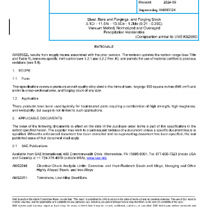 This specification covers a premium aircraft-quality alloy steel in the form of bars, forgings 100 square inches (645 cm2) and under in cross-sectional area, and forging stock of any size.