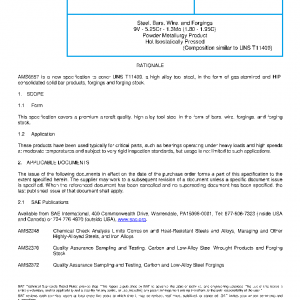 This specification covers a premium aircraft-quality, high-alloy tool steel in the form of bars, wire, forgings, and forging stock.