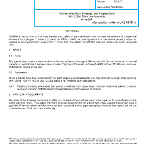 This specification covers a titanium alloy in the form of bars up through 4.000 inches (101.60 mm) inclusive, in nominal diameter or least distance between parallel sides, forgings of thickness up through 4.000 inches (101.60 mm), inclusive, and stock for forging of any size.