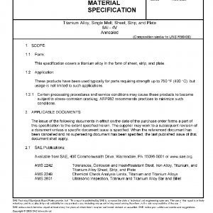 Titanium Alloy, Single Melt, Sheet, Strip, and Plate 6Al – 4V Annealed