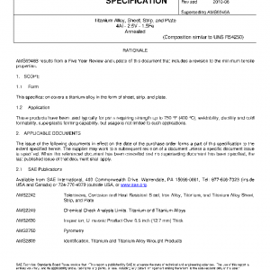 This specification covers a titanium alloy in the form of sheet, strip, and plate.