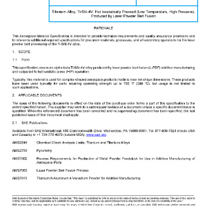 This specification covers an alpha-beta Ti-6Al-4V alloy produced by laser powder bed fusion (L-PBF) additive manufacturing and subjected to hot isostatic press (HIP) operation.