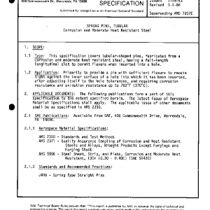 This specification covers tubular-shaped pins, fabricated from a corrosion and moderate heat resistant steel, having a full-length longitudinal slot to permit flexure when inserted into a hole.