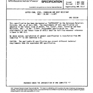 Cotter Pins, Steel 18cr 10.5ni 0.40ti, Corrosion and Heat Resistant Steel(Cancelled Oct 1993)