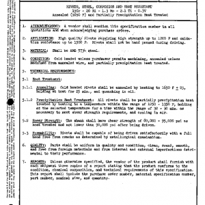 RIVETS, STEEL, CORROSION AND HEAT RESISTANT 15Cr – 26 Ni – 1.3 Mo – 2.1 Ti – 0.3V Annealed (1650 F) and Partially Precipitation Heat Treated