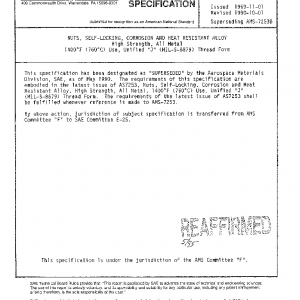 Nuts, Self-Locking Alloy, Corrosion and Heat Resistant, High Strength, All Metal, 1400°F Use, Unified “J” (MIL-S-8879) Thread Form(Cancelled Jan 1990)