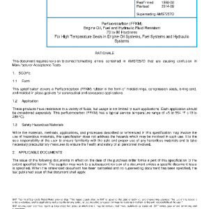 This specification covers a Perfluorocarbon (FFKM) rubber in the form of molded rings, compression seals, o-ring cord, and molded-in-place gaskets for aeronautical and aerospace applications.