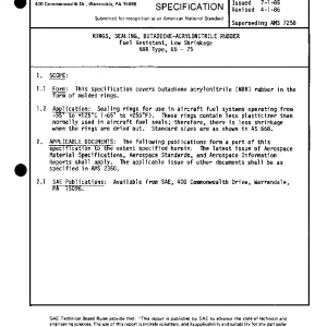 This specification covers butadiene acrylonitrile (NBR) rubber in the form of molded rings.
